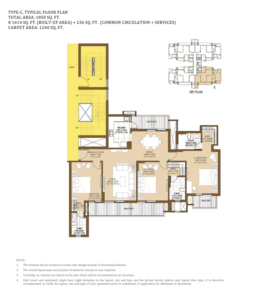 Details Area Total Area 1850 sq. ft. Built-up Area 1614 sq. ft. Common Circulation + Services 236 sq. ft. Carpet Area 1240 sq. ft.